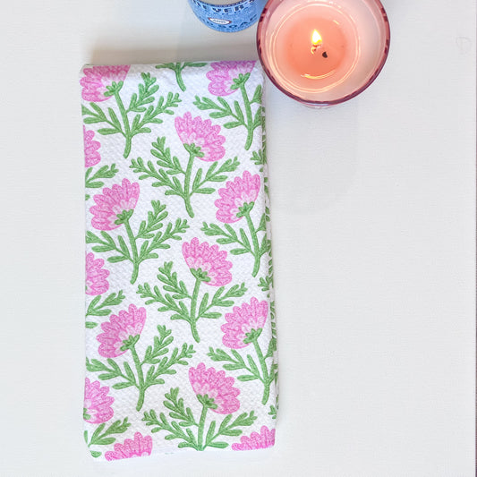 Pink Folk Flowers Premium Waffle Weave Hand Towel - Absorbent & Quick Drying