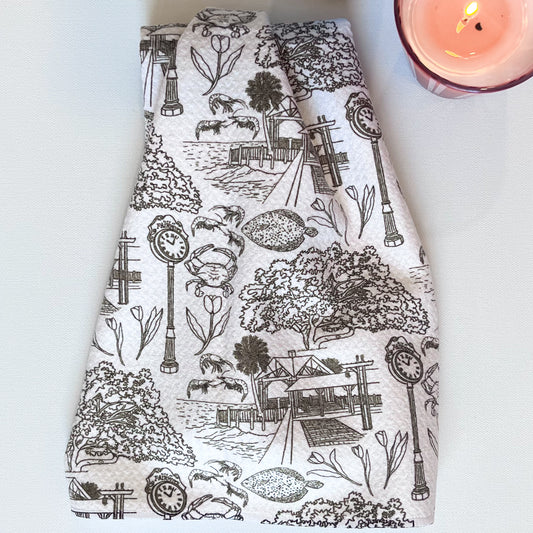 Fairhope Toile in Brown Premium Waffle Weave Hand Towel - Absorbent & Quick Drying