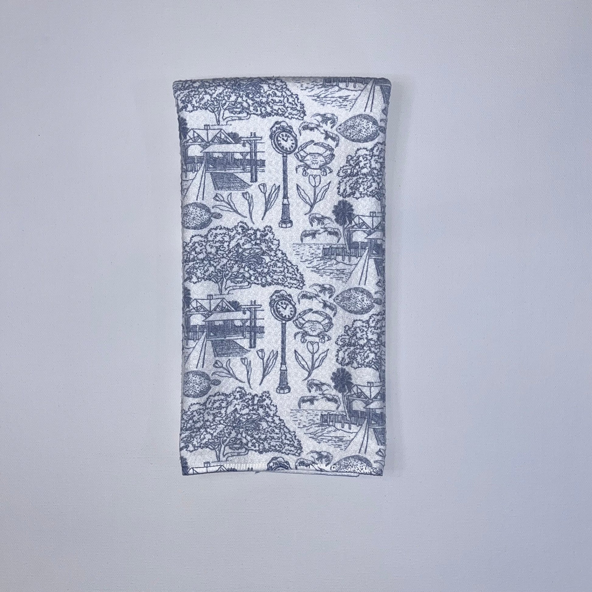 Transport yourself to the charming streets of Fairhope, Alabama, with our exquisite toile-themed hand towel. Inspired by the town's rich heritage and unique landmarks, this design captures the essence of Fairhope in every detail.